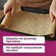 Бумага для выпечки характеризуется высокой степенью жиростойкости и влагостойкости, не прилипает к тесту и форме, а также предотвращает пригорание. Выдерживает температуру до 230 °С. Подходит для многоразового использования. Плотность – 35 г/м2. Размер рулона – 38 см x 8 м.