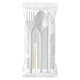 Компактный набор включает в себя все необходимые столовые приборы в удобной индивидуальной упаковке. Могут быть использованы в офисе, на предприятиях общественного питания, в дороге и быту.
