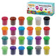 В набор входят 24 баночки теста для лепки, из который 18 ярких классических цветов: