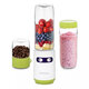 В комплекте идут две бутылки Shake&Take объемом 300 мл из безопасного материала тритан (BPA-free), которые можно брать с собой в спортзал, на работу или в дорогу. Они легко помещаются в подстаканник автомобиля, а благодаря герметичной крышке риск пролить содержимое сведен к нулю. Также в набор входит чаша кофемолки объемом 50 мл и сито, которое позволяет заваривать чаи или прохладительные напитки, не допуская попадания крупных частиц в бутылку.