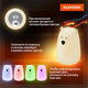Силиконовый ночник DASWERK в очаровательном дизайне мягко рассеивает свет, создавая тёплую и спокойную атмосферу в любой комнате – будь то детская, спальня или гостиная. Корпус из приятного на ощупь силикона безопасен для самых маленьких, не нагревается и устойчив к деформации, поэтому его можно использовать даже как антистресс-игрушку. Если легко стукнуть по ночнику, он поменяет цвет.
