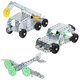 Для удобства в набор входит подробная иллюстрированная инструкция с пошаговыми рекомендациями по сборке 5 разных моделей, которая познакомит начинающего мастера с азами сборки. Начальный уровень сложности сборки предусмотрен для детей младшего и среднего школьного возраста. Элементы конструктора выполнены из металла и пластика. Также в набор входят пластиковые детали. Поставляется в картонной упаковке.
