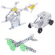 Вес товара – 430 г вместе с упаковкой, в комплект входит 155 элементов. Комплектация: детали – 153 шт., ключ гаечный – 1 шт., отвертка – 1 шт., инструкция по сборке. Большая часть деталей изготовлена из металла, но есть и дополнительные элементы из пластика (например, миниатюрные колеса). Каждый набор укомплектован специальной отверткой и гаечным ключом. Предусмотрена инструкция, в которой подробно описаны и проиллюстрированы схемы сборки 5 моделей: вертолета, самолета, коляски, велосипеда и автомобиля. Можно собирать изделия по предложенным схемам или придумывать свои. Набор позволяет создавать разнообразные типы моделей, сформировать представление о строении различных типов транспортных средств и механизмов. Развивает мелкую моторику, усидчивость, логическое и абстрактное мышление.
