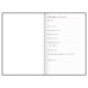 Внутренний блок включает 160 листов белой бумаги плотностью 70 г/м2. Каждая страничка имеет перфорированный угол. Благодаря стандартному формату А5 (145х213 мм) ежедневник удобно использовать как в офисе, так и на выездных деловых встречах.