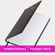 Жесткая книжная обложка классического черного цвета с легкой рельефной фактурой напоминает натуральную кожу. Материал обложки – балакрон, подходит для тиснения только фольгой. Дополнением является закладка-ляссе, с помощью которой при необходимости можно быстро открыть ежедневник на нужной странице. Обширный справочный материал дополнительно расширяет функциональность ежедневника. В конце внутреннего блока есть 4 страницы для записей и заметок.