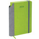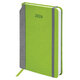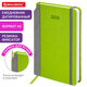 Выполнен в стильном сочетании зеленого и серого цветов. Жесткая книжная обложка стилизована под искусственную кожу с текстурой льна, фиксируется резинкой, поэтому ежедневник не откроется в сумке или портфеле и страницы не помнутся. Материал обложки подходит для горячего тиснения. Для удобства пользования ежедневник снабжен карманом для фиксации ручки. Дополнением является закладка-ляссе, с помощью которой при необходимости можно быстро открыть ежедневник на нужной странице.