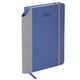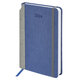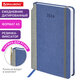 Выполнен в стильном сочетании синего и серого цветов. Жесткая книжная обложка стилизована под искусственную кожу с текстурой льна, фиксируется резинкой, поэтому ежедневник не откроется в сумке или портфеле и страницы не помнутся. Материал обложки подходит для горячего тиснения. Для удобства пользования ежедневник снабжен карманом для фиксации ручки. Дополнением является закладка-ляссе, с помощью которой при необходимости можно быстро открыть ежедневник на нужной странице.