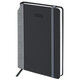 Выполнен в стильном сочетании черного и серого цветов. Жесткая книжная обложка стилизована под искусственную кожу с текстурой льна, фиксируется резинкой, поэтому ежедневник не откроется в сумке или портфеле и страницы не помнутся. Материал обложки подходит для горячего тиснения. Для удобства пользования ежедневник снабжен карманом для фиксации ручки. Дополнением является закладка-ляссе, с помощью которой при необходимости можно быстро открыть ежедневник на нужной странице.
