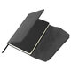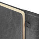 Твердая обложка стилизована под текстурную кожу и имеет интересную деталь в виде магнитного клапана декорированного молнией и кнопкой. Благодаря клапану ежедневник не откроется в сумке или портфеле. Подходит для горячего тиснения. Дополнениями являются закладка-ляссе, с помощью которой при необходимости можно быстро открыть ежедневник на нужной странице, и держатель для ручки.