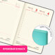 Внутренний блок включает 168 листов кремовой бумаги плотностью 70 г/м2. Каждая страничка имеет перфорированный угол. Благодаря стандартному формату А5 (138х213 мм) ежедневник удобно использовать как в офисе, так и на выездных деловых встречах.