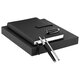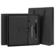 Подарочный набор включает в себя недатированный ежедневник с внутренним блоком из 160 листов кремовой бумаги плотностью 70 г/м2. Каждая страничка имеет перфорированный угол. Благодаря классическому формату А5 (145x212 мм) ежедневник удобно использовать как в офисе, так и на выездных деловых встречах. Твердая обложка стилизована под текстурную кожу. Ежедневник фиксируется магнитной застежкой, поэтому не откроется в сумке или портфеле и страницы не помнутся. Дополнениями являются закладка-ляссе и держатель для ручки.