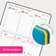 Срез и форзац еженедельника окрашены на контрасте с цветом обложки, что придает ему особый шарм. Дополнением является закладка-ляссе, с помощью которой при необходимости можно быстро открыть еженедельник на нужной странице. В конце внутреннего блока есть 7 страниц для записей и заметок. Обширный справочный материал расширяет функциональность еженедельника.