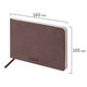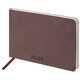 Внутренний блок включает 64 листа тонированной бумаги плотностью 70 г/м2. Благодаря малому формату А6 (105х160 мм) еженедельник удобно использовать как в офисе, так и на выездных деловых встречах. Гибкая обложка темно-коричневого цвета, стилизованная под гладкую кожу, подходит для горячего тиснения.