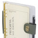 Бизнес-блокнот имеет гибкую прозрачную пластиковую обложку и золотистые детали, что придает ему стильный и оригинальный вид. Имеет закругленные уголки. 80 листов позволят зафиксировать большой объем информации. Линовка блока в клетку (5х5 мм) дает возможность аккуратно заполнить цифровые значения, а также нанести чертежные зарисовки. Внутренний блок выполнен из офсета кремового цвета плотностью 70 г/м2. Снабжен застежкой с поворотным механизмом, благодаря чему блокнот не откроется в сумочке или портфеле, и листы не помнутся. Формат А5 (180х235 мм) позволит владельцу поместить его в кейс или сумку малых габаритов.
