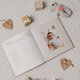 Альбом состоит из 64-х бумажных страниц размером 22,6х24,6 см с красочными детскими рисунками. Каждая страница позволит сохранить значимые моменты малыша – от его рождения, первого купания и первой прогулки, и до 5 лет! Альбом c бархатной бежевой обложкой станет важным семейным архивом, ведь в нем можно описать не только историю рождения и развития малыша, но и внести информацию о семье: о маме и папе, составить семейное древо.