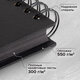 Фотоальбом на пружине состоит из 40 бумажных листов чёрного цвета размером 21x30 см, без карманов. Это позволяет размещать фотографии на одной странице, а также оставлять рядом с фото надписи от руки, рисунки, наклеивать креативные стикеры.