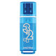 Флеш-диск объемом 32 Гб комплектуется специальной системой для крепления колпачка – с помощью скобки он фиксируется между двумя выступающими пластинками на устройстве. Это очень удобно и минимизирует вероятность потери защитного колпачка. За эту же скобку флешку можно прикрепить к шнурку. Выполнен из прозрачного пластика синего цвета. Размер – 55х18х9 мм. Вес – 10 г.