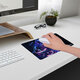 Прорезиненное основание надежно фиксирует аксессуар на столе. Благодаря компактным размерам этот привлекательный в плане дизайна коврик для мыши удобно переносить в компьютерной сумке.