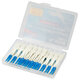 В комплекте 40 (+5) межзубных ёршиков, упакованных в удобный пластиковый бокс с крышкой.