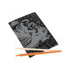 Контур рисунка уже нанесен на черный фон. С помощью специального штихеля изображение процарапывается, и из-под слоя краски появляется основа (золотая, серебряная, голографическая). В результате получается контрастный рисунок. Набор содержит все необходимое для создания оригинальной картины: основу с контуром, штихель, инструкцию.
