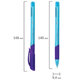 Корпус ручки имеет трехгранную форму и выполнен в ярких оттенках, которые в сочетании с деталями фиолетового цвета создают стильную композицию оттенков. Резиновый держатель в зоне захвата обеспечивает комфортный процесс письма, снижая нагрузку на руку. Технология мягкого письма "FEEL INK". Специальные чернила ультрапониженной вязкости на масляной основе мягко и плавно ложатся на бумагу, а ручка скользит по бумаге без каких-либо усилий. Игольчатый наконечник диаметром 0,7 мм создает тонкую линию письма толщиной 0,5 мм. Цвет чернил – синий.