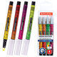 Текстовыделители желтого, розового, оранжевого и зеленого цветов имеют круглую форму корпуса, диаметр которого 12 мм. Специальный скошенный наконечник выполнен вокруг прозрачного пластика, который позволяет видеть, до какого конкретного места необходимо выделить текст. Толщина линии письма от 1 до 5 мм, что обеспечивает удобство при работе с текстом, напечатанным мелким шрифтом, или таблицами. Благодаря особой водной основе чернила быстро впитываются и тем самым предотвращают размазывание в процессе использования. Текстовыделитель обладает экономным расходом чернил, при этом длина линии письма достигает 300 метров. Прозрачный колпак обеспечивает отличный обзор главной особенности текстовыделителя - наконечника с прозрачным окошком, наличие клипа позволяет фиксировать текстовыделитель на тетрадке, блокноте или ежедневнике.