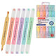 В наборе 6 двусторонних текстовыделителей пастельных цветов: ванильный, мятный, пастельный розовый, бирюзовый, лавандовый и персиковый. Нежные пастельные цвета позволяют создать мягкие переходы и равномерно подчеркнуть необходимую информацию в тексте. Цвет корпуса соответствует цвету чернил.