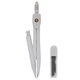 В состав готовальни входят 2 предмета: - циркуль c механическим карандашом; - пенал с запасными грифелями. Циркуль длиной 120 мм с механическим карандашом имеет несгибаемые штанги. Изготовлен из металла. Цвета ассорти – белый, черный, оливковый. Поставляется в пластиковом пенале с прозрачной крышкой. Товар дополнительно упакован в картонную коробку.