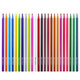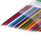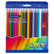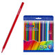 Набор состоит из 24 цветов: черный, темно-синий, синий, голубой, салатовый, зеленый, темно-зеленый, болотный, серо-зеленый, желтый, оранжевый, темно-оранжевый, персиковый, фуксия, розовый, красный, темно-красный, бордовый, песочный, серый, белый, фиолетовый, темно-коричневый, коричневый. Шестигранная форма сечения корпуса позволяет не скатываться карандашу с поверхности стола во время занятий рисованием. Карандаши изготовлены из высококачественного цветного пластика и имеют лакированный корпус. Качество исполнения гарантирует легкую заточку. Грифель диаметром 3 мм обладает повышенной прочностью. Все карандаши заточены и поставляются в прозрачной пластиковой коробке с европодвесом.