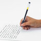 Стержень снабжен пишущим узлом с диаметром шарика 0,38 мм. Новые усовершенствованные чернила позволяют писать с толщиной линии 0,2 мм, сохраняя плавность письма традиционной гелевой ручки. Цвет чернил - черный.