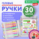 Набор включает 30 гелевых ручек: 5 ручек с классическими чернилами, 12 с блестками, 7 пастельных и 6 неоновых.