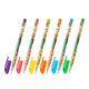 Набор включает 6 ручек с различными цветами чернил: синий, оранжевый, зеленый, желтый, розовый, фиолетовый. Чернила представлены в неоновых оттенках – идеально для создания ярких образов и запоминающихся рисунков. Круглый корпус ручек выполнен в интересном дизайне с милыми животными, которые поднимут настроение и вдохновят на новые идеи. Гелевые чернила ложатся на бумагу мягко и плавно – с ними ручка скользит по бумаге практически без нажима, позволяя заниматься творчеством на протяжении долгого времени без усталости. Диаметр стандартного наконечника составляет 1 мм, толщина линии письма – 0,7 мм.