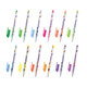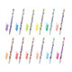 Ручка имеет круглый яркий корпус с печатью. Сменный стержень длиной 130 мм со стандартным наконечником позволит использовать ручку максимально долго. Диаметр пишущего узла 1 мм создает линию письма толщиной 0,5 мм. Набор включает 36 гелевых ручек с различными эффектами: 12 ручек с пастельными оттенками, 12 с блестками, 12 неоновых.