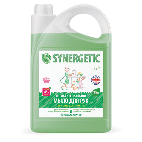 Мыло жидкое антибактериальное 3,5 л SYNERGETIC "Лемонграсс и мята", антизапах, 105201