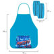 Фартук и нарукавники изготовлены из водоотталкивающего полиэстера. Стандартный размер фартука – 46x54 см, размер нарукавников – 25х12 см. Кроме того, фартук оснащен карманом для канцелярии и прочих принадлежностей, которые всегда должны быть под рукой во время уроков труда и занятий творчеством.