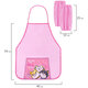 Фартук и нарукавники изготовлены из водоотталкивающего полиэстера. Стандартный размер фартука – 46x54 см, размер нарукавников – 25х12 см. Кроме того, фартук оснащен карманом для канцелярии и прочих принадлежностей, которые всегда должны быть под рукой во время уроков труда и занятий творчеством.