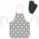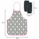 Фартук и нарукавники изготовлены из водоотталкивающего полиэстера. Стандартный размер фартука – 54х46 см, размер нарукавников – 25х12 см. Сверху завязки оснащены металлическим ушком для регулировки фартука по росту ребенка, подходит детям разных возрастов ростом от 117 см.