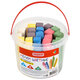 В наборе 22 ярких мелка шести различных цветов: голубой, зеленый, желтый, красный, оранжевый, белый. Благодаря квадратной утолщенной форме с заостренным концом мел удобно ложится в руку и рисует на асфальте. Изготовлен из высококачественного природного сырья без добавления гипса, нетоксичен. Легко смывается с рук. Мел упакован в пластиковое ведерко – идеально, чтобы хранить мел или брать его с собой.
