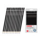 Карандаши изготовлены из дерева высокого качества. Имеют шестигранное сечение. Карандаши длиной 176 мм легко точатся и не крошатся. Набор состоит из карандашей различных степеней твердости: 5H – 1 штука, 4H – 1 штука, 3H – 1 штука, 2H – 1 штука, Н – 1 штука, НВ – 2 штуки, В – 1 штука, 2B – 1 штука, 3B – 1 штука, 4B – 1 штука и 5B – 1 штука. Диаметр грифеля – 2,05 мм. Выполнены в черном цвете. Поставляются заточенными.