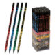 Каждый карандаш имеет индивидуальный штрих-код. Легко затачивается, максимально устойчив к повреждениям. Изготовлен из чёрного дерева высокого качества, оснащен ластиком. Имеет круглое сечение. Карандаш длиной 190 мм обладает средней степенью твердости – HB. Выполнен в черном цвете с цветными дизайнами. Поставляется заточенным в пластиковом стакане по 72 штуки.