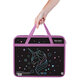 Папка-сумка с ручками подходит для бумаг, документов и учебных пособий формата А4. Изготовлена из прочного износостойкого пластика с тканевой окантовкой по краям. Размер папки составляет 330х260 мм, ширина — 80 мм. Широкий формат изделия позволяет разместить внутри большое количество канцелярских принадлежностей для творчества, включая стакан-непроливайку. Папка оснащена удобной застёжкой-молнией сверху. Прочные ручки, изготовленные из тесьмы и надёжно прикреплённые к папке, обеспечивают комфортную переноску даже при большой нагрузке. Индивидуальная упаковка – полиэтиленовый пакет с европодвесом – защищает товар при транспортировке и позволяет удобно разместить его для покупателей.