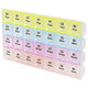 Таблетница представляет собой пластиковый контейнер, состоящий из 28 отделений, для организации хранения и приема лекарственных средств 4 раза в день 7 дней в неделю. Таблетница удобна и надежна в транспортировке, помогает упорядочить прием витаминов и лекарств дома, на работе и в путешествии.