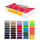 В набор входит 40 катушек 40/2 различных цветов (пастельные, яркие, темные) в намотке 200 м. Поставляются в пластиковой прозрачной тубе с крышкой.