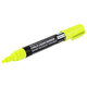 Рисунок получается плотный и яркий. Чернила на водно-меловой основе желтого цвета без резкого запаха. Толщина линии письма – от 1 мм до 3 мм, зависит от угла наклона мелового маркера. Круглый корпус выполнен из пластика.