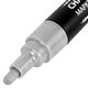 Рисунок получается плотный и яркий. Чернила на водно-меловой основе серебристого цвета без резкого запаха. Толщина линии письма – от 1 мм до 3 мм, зависит от угла наклона мелового маркера. Круглый корпус выполнен из пластика.