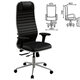 Сверхпрочный стальной каркас. Спинка высокая, эргономичной формы, с ярко выраженной поясничной поддержкой, с хромированным молдингом. Эргогиб, как у кресел SAMURAI. Спинка имеет стальной регулируемый поясничный подпор. Спинка снабжена мягким комфортным подголовником. Уникальная форма передней части сиденья исключает сдавливание сосудов ног, сохраняя ощущение легкости в ногах. Сиденье мягкое, объемное, на столярном каркасе. Регулировка угла наклона сиденья. Обивка из перфорированной многослойной экокожи, с тонкой прошивкой. Комфортные 2D-подлокотники с регулировками: высоты, вперед-назад. Пятилучие – современного дизайна, металлическое хромированное. Колеса-ролики имеют полиуретановое покрытие, обеспечивающее бесшумный ход и защиту пола от повреждений. Модель оснащена Синхромеханизмом Мультиблок с возможностью регулировки силы отклонения и фиксации в 3 различных положениях угла наклона кресла. Он позволяет согласованно, с определенной зависимостью изменять углы наклона одновременно и спинки, и сиденья. В данной модели кресла реализовано оптимальное соотношение 3:1, при котором наклону спинки на 3 градуса соответствует наклон сиденья на 1 градус. Функция "Антишок-эффект" позволяет исключить неожиданное "опрокидывание" кресла при изменении угла наклона. Прочный газлифт высшего 4 класса.