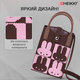 У сумочки-органайзера два варианта ручек - 1 удлиненная плетеная ручка размером 120 см позволяет носить ее через плечо. Кроме того, сумочка оснащена 2 нескользящими силиконовыми ручками, с помощью которых ее комфортно держать в руке, размер каждой ручки - 28 см. Металлическая застежка-кнопка, расположенная в верхней части сумки, сохранит все предметы в безопасности.