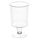 Одноразовые рюмки изготовлены из полистирола (ПС), который отличается прозрачностью и легким весом. Имеют классический дизайн на ножке, напоминающий стеклянную посуду. Высота изделия – 90 мм, диаметр – 90 мм, объём – 100 мл.
