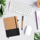 Подарочный набор включает в себя блокнот с внутренним блоком из 80 листов кремовой бумаги плотностью 70 г/м2. Благодаря классическому формату А5 (145х213 мм) блокнот удобно использовать как в офисе, так и на выездных деловых встречах. Твердая обложка выполнена из экологичных материалов под кожу и пробковое покрытие. Блокнот оснащен резинкой-фиксатором, поэтому не откроется в сумке или портфеле и страницы не помнутся. Дополнениями являются закладка-ляссе и держатель для ручки. Шариковая ручка со стильным корпусом из экологичного пластика и материала под пробку также входит в набор.
