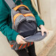 - Оригинальное сочетание серого и оранжевого цвета в дизайне рюкзака.